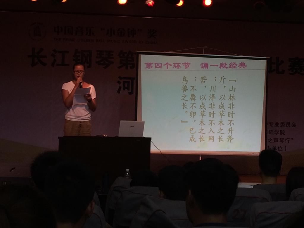 第四部分,“诵经典”。在主持人的带领下,全场同学齐声朗诵环保题材的古诗文。