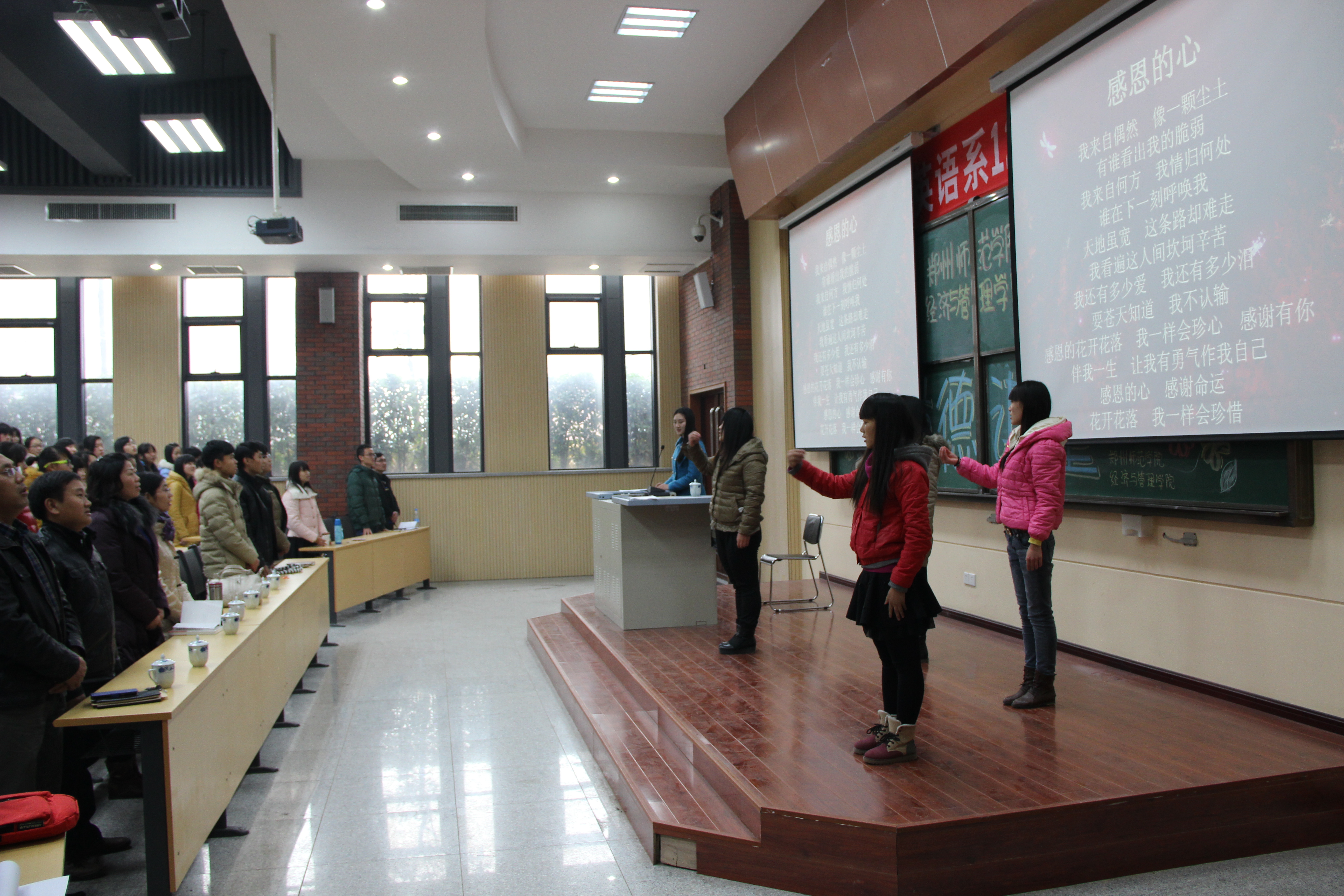 2013年12月17日下午,经济与管理学院为培养学生道德素质,提高道德修养,在公共教学楼A101举办了一场由王一硕先生主讲,以《诚信·感恩·报国》为主题的道德讲堂。王一硕老师是“中国十大杰出青年志愿者”、河南青年“五四”奖章、首届“全国道德模范”诚实守信楷模等40余项荣誉称号获得者。