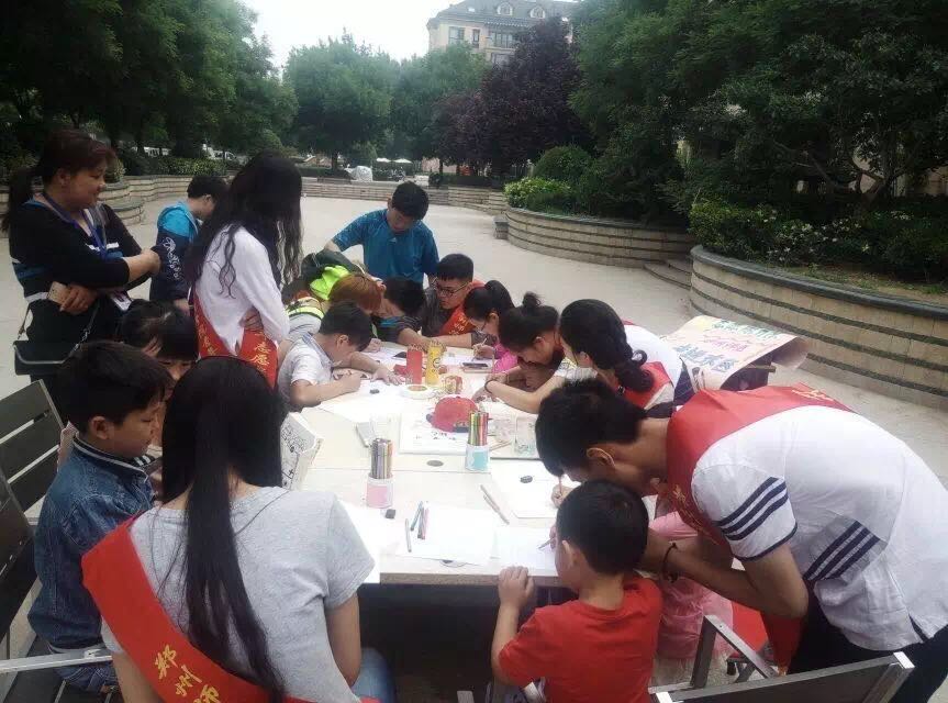 为丰富居民文化生活,弘扬志愿服务精神。郑东新区团工委联合郑州师范学院青年志愿者协会美术服务队于2016年5月21日走进绿城百合社区,开展了美术志愿教学服务工作。共有10名志愿者参加了此次志愿教学服务。