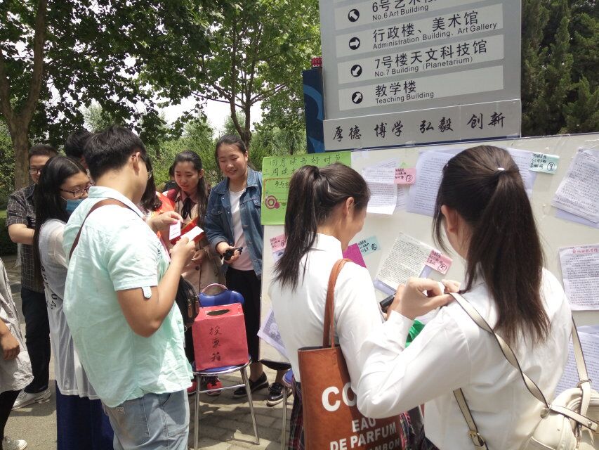 4月23日是世界读书日。四月也是最适宜读书的季节。为了培养学生的阅读兴趣,营造文明优雅的学习氛围,塑造浓郁书香的学习型校园,信息科学与技术学院青年志愿者协会特举办了“四月读书好时节”系列活动之“四月读本好书”。经过了三个星期,同学们都读完了一本好书,并从中得到了感悟,5月13号中午,信息科学与技术学院青年志愿者协会特在西校区天鹅湖附近开展了“读书成果展示”活动。