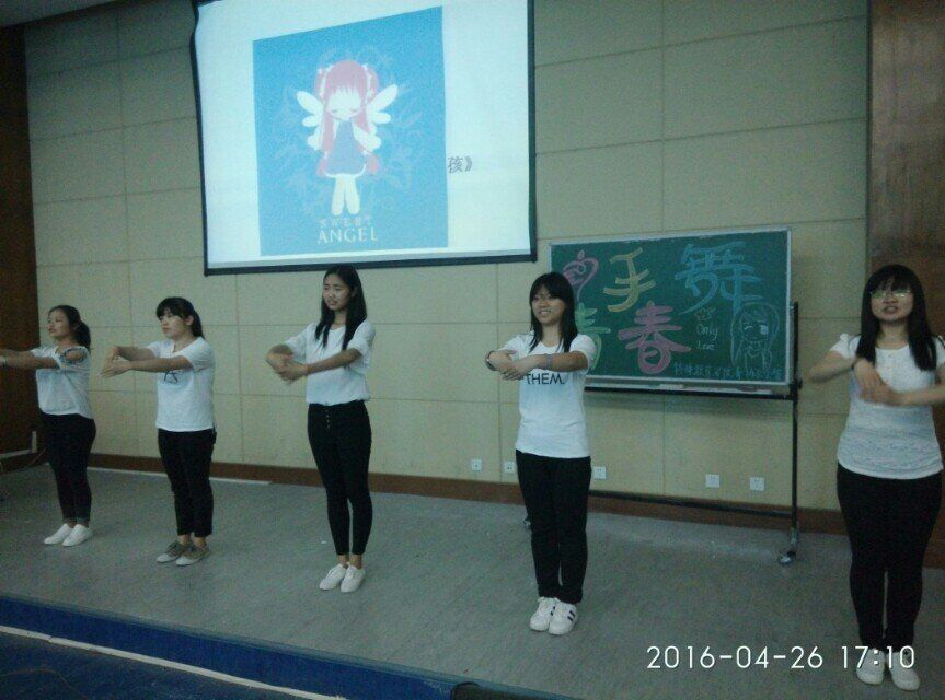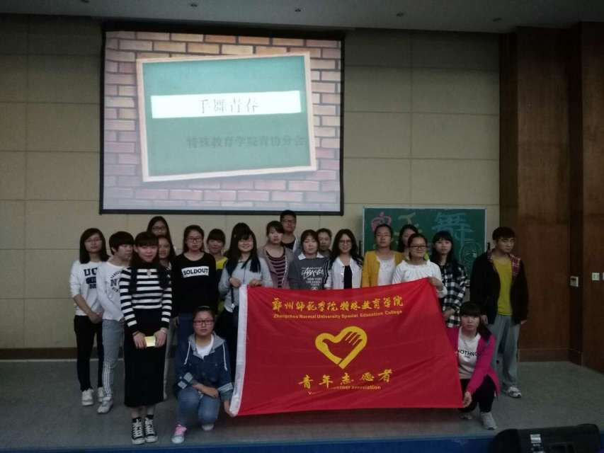 特殊教育学院青年志愿者协会在4月26日于特教楼312举办了“手舞青春”活动,使更多人了解聋生,走进聋生世界。青年志愿者协会人员参与到本次活动当中,特殊教育学院青年志愿者们为前来参加活动的同学们展示了手语舞《挥着翅膀的女孩》,同学们教授了部分常用手语以及手语舞《小苹果》,对同学们学习进度进行了评比。