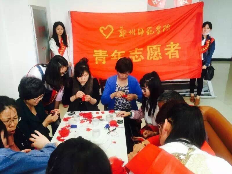为丰富居民文化生活,弘扬志愿服务精神,郑东新区团工委联合祭城路街道办事处、郑州师范学院青年志愿者协会,于4月23日在祭城路街道办事处中兴路社区服务中心开展了丝网花制作志愿培训活动,共计20余名居民参与活动,11名志愿者在郑州师范学院团委李思嘉老师的带领下在现场进行志愿服务。