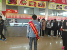2016年3月24日中午11点40分,物理与电子工程学院于老校区举办了餐厅值岗的学雷锋活动,志愿者们在学校餐厅组织同学们自觉排队就餐。