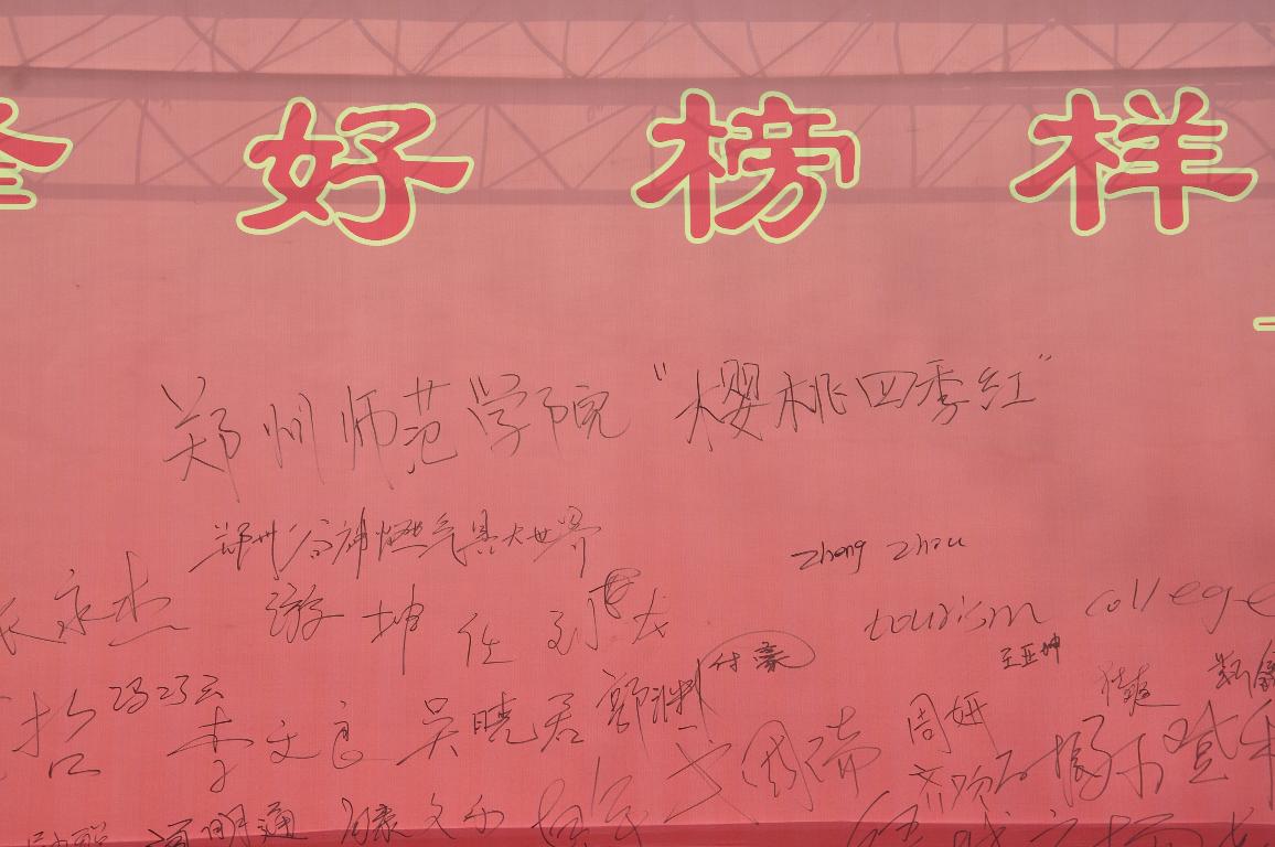 嘹亮的歌声中,优秀志愿服务项目展示也拉开了帷幕。郑州师范学院“樱桃四季红”青年志愿者服务项目负责人王雪老师带领美术学院的青年志愿者们参加了此次活动,并现场展示了大量的手工成果—扎染、手工丝网花和叶脉装饰画,引来了大量群众的围观,郑州市志愿者联合会会长武国瑞,郑州市委宣传部副部长、文明办主任裴保顺、市文明办副主任姬月莲对本项目都给予了肯定,并对此项目寄予厚望,希望我们今后能为广大的村民提供更多的种类的技能培训从而提高生活水平,为郑州市塑造有标杆性的正能量。