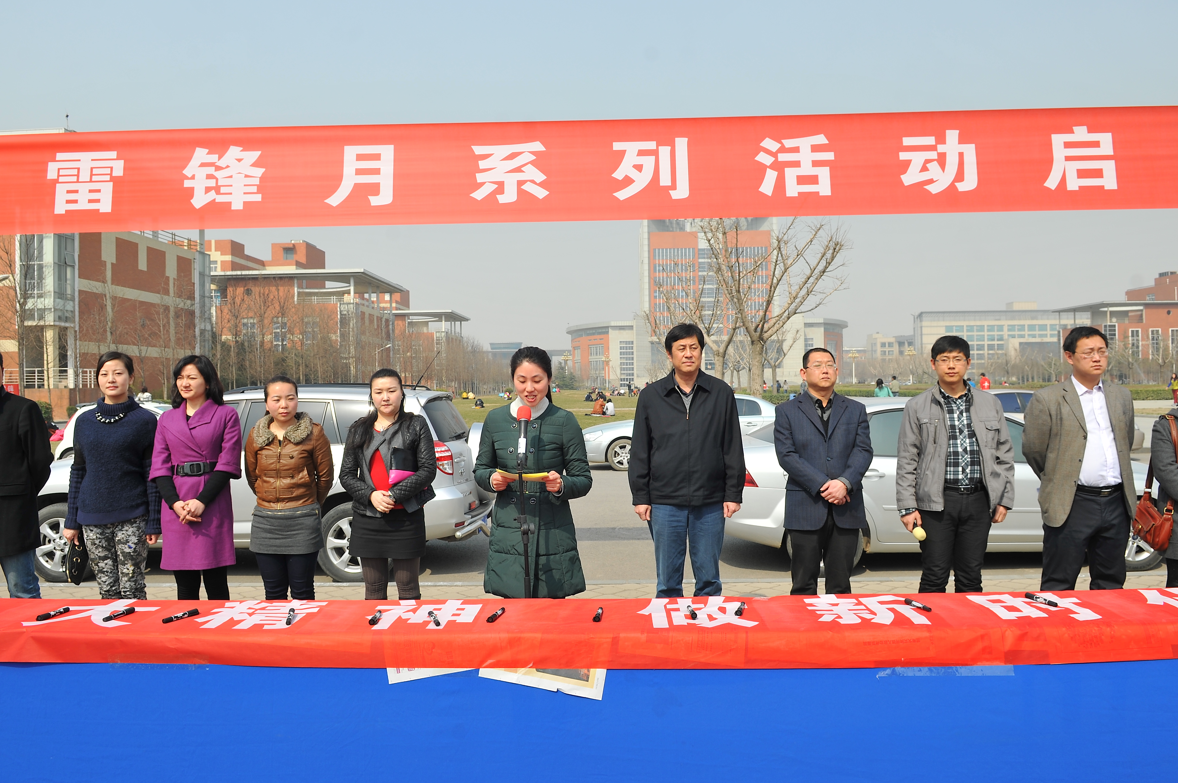 为深入贯彻党的十八大精神,响应党中央向雷锋同志学习的号召,大力弘扬雷锋精神,3月5日下午,我校团委雷锋月启动仪式在西校区南门广场举行,校党委副书记、工会主席弓民出席启动仪式。