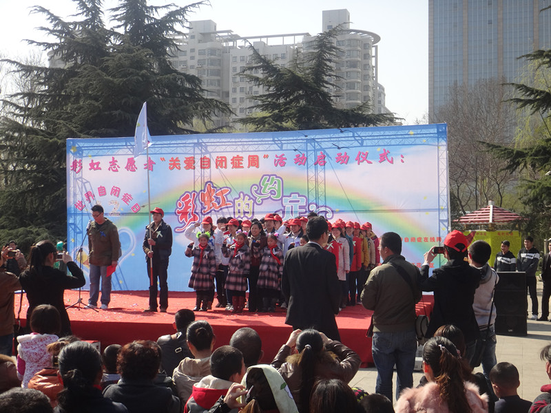 为迎接4月2日“世界自闭症日”,唤起社会上更多的人关爱自闭症儿童,3月24日上午,我院35名志愿者在郑州市动物园参加了郑州市残联和“康达”能力训练中心联合举办的自闭症周活动启动仪式——“彩虹的约定”。