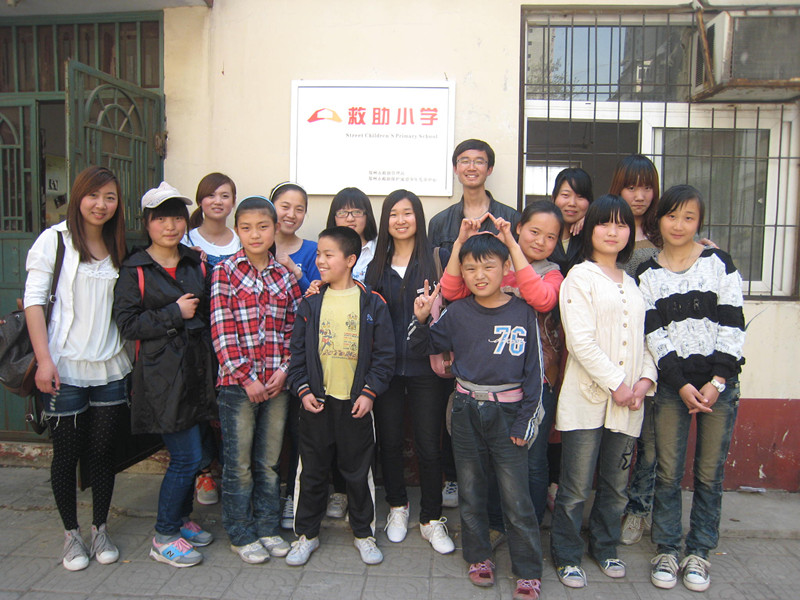 2012年4月6日下午,外国语学院青协成员在梦美、王旭初带领下,去苗圃救助小学赠送募捐来的衣物。