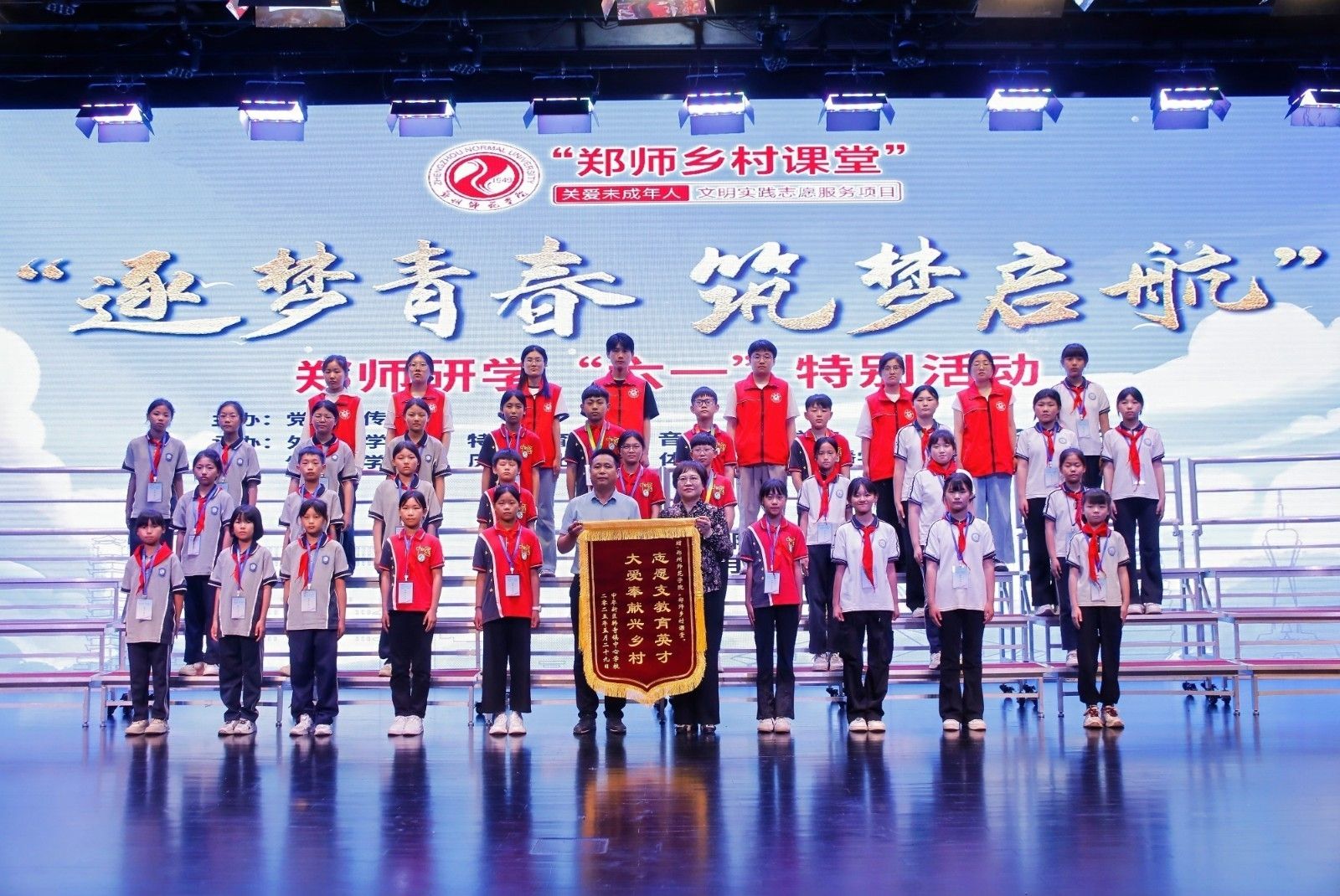 在六一儿童节来临之际,学校以“郑师乡村课堂”志愿服务项目为依托,以“逐梦青春 筑梦启航”为主题,开展了一场别开生面的研学“六一”特别活动。学校主要领导、中牟县教育局相关领导、部分受助乡村学校教师代表,以及正在中牟县韩寺镇支教的志愿者带领来自三所乡村学校的30名小学生参加本次活动。外国语学院、特殊教育学院、音乐与舞蹈学院、物理与电子工程学院、生命科学学院、历史文化学院、体育学院、传播学院、自然博物馆等部门的师生志愿者参与。