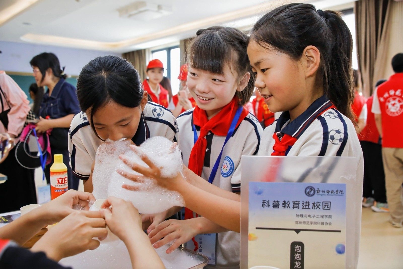 在物理与电子工程学院,孩子们体验了“漂浮的鸡蛋”“看得见的声音”“会轻功的回形针”“静电章鱼”等14个趣味科普实验,并亲手制作“水果电池”,在欢笑与惊叹中体验摩擦生电和烟雾瀑布,感受科学的无穷魅力。