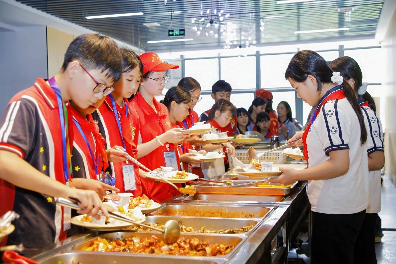 在嵩山学堂音乐厅,孩子们走进“童声里的中国”河南省文明校园合唱团交流展演活动(郑州站),近距离观看残疾人艺术团演绎的舞蹈《妙手生花》,聆听5所文明校园合唱团带来的合唱歌曲,乡村孩子也现场演唱了《我们是共产主义接班人》。中牟县韩寺镇教育党总支书记张建华为我校赠送锦旗。来自生命科学学院的师生志愿者为孩子们赠送了香囊。外国语学院和历史文化学院50余名师生志愿者为研学的乡村孩子提供了全天的保驾护航。