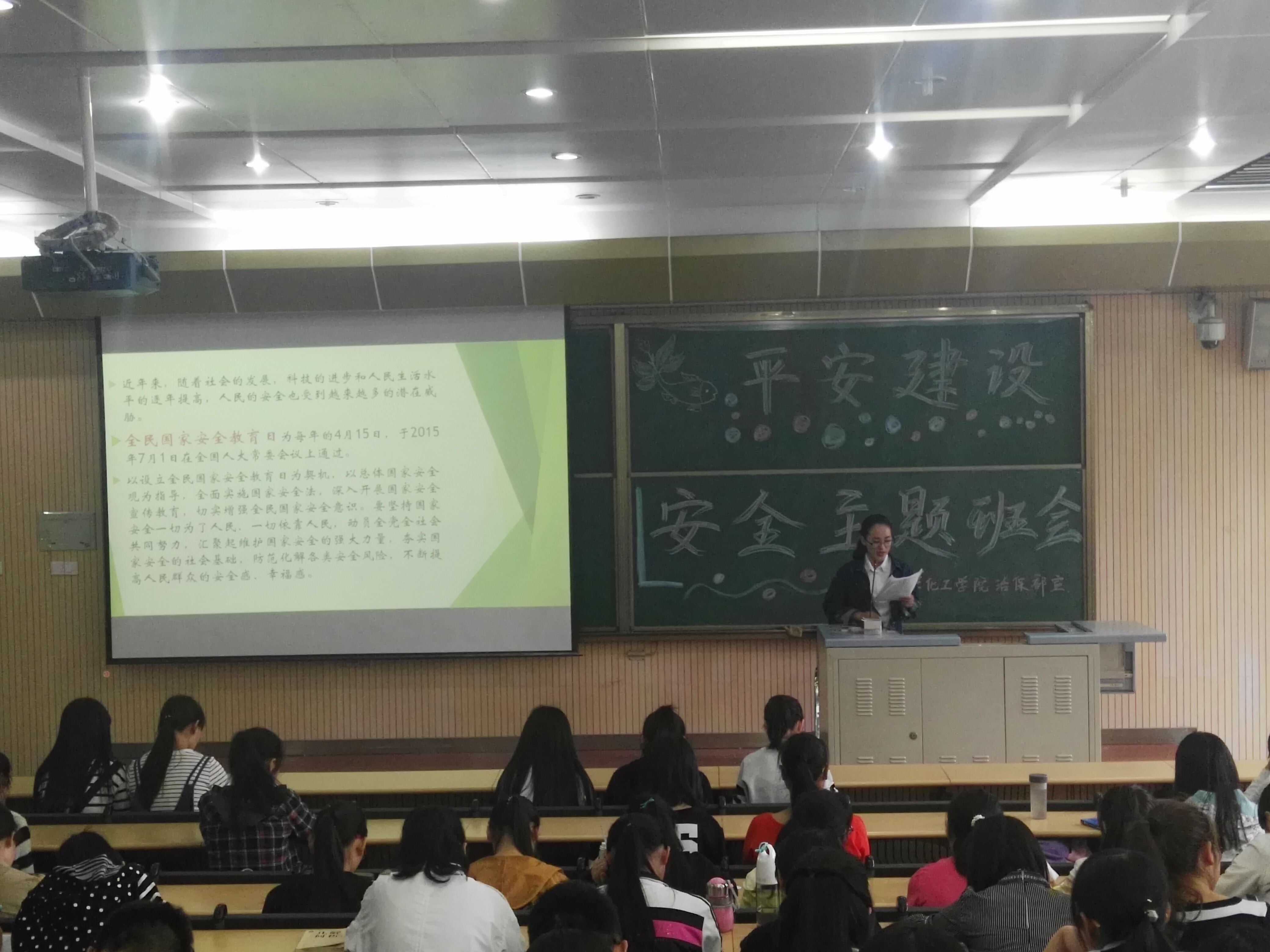 为响应4月15日全民国家安全教育日及校保卫处和校治保部要求,化学化工学院于2017年4月20日在新校区综合教学楼B114教室开展了“平安建设”安全主题班会,此次班会由院治保部主办,全体大一同学参加。