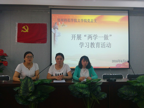 6月6日12点半,文学院党总支在外语楼B411会议室内开展了“两学一做”学习教育活动。文学院学生党支部书记张瑜文、传播学院学生党支部书记朱晨阳出席了本次活动。本次活动由13级学生党员杨嘉君主持,文学院与传播学院的在校学生党员参加了本次活动。