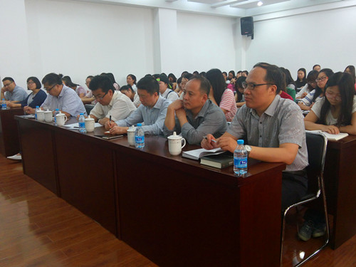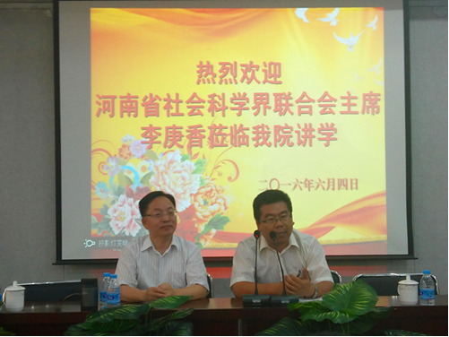 6月4日15时,河南省社会科学界联合会主席李庚香于外语楼B411会议室为文学院讲学。郑州师范学院副院长孔青、文学院院长刘钦荣、副院长刘安军、中文系主任白玉红、文学院教师郭浩波出席此次讲学,文学院部分学生参加此次讲学。