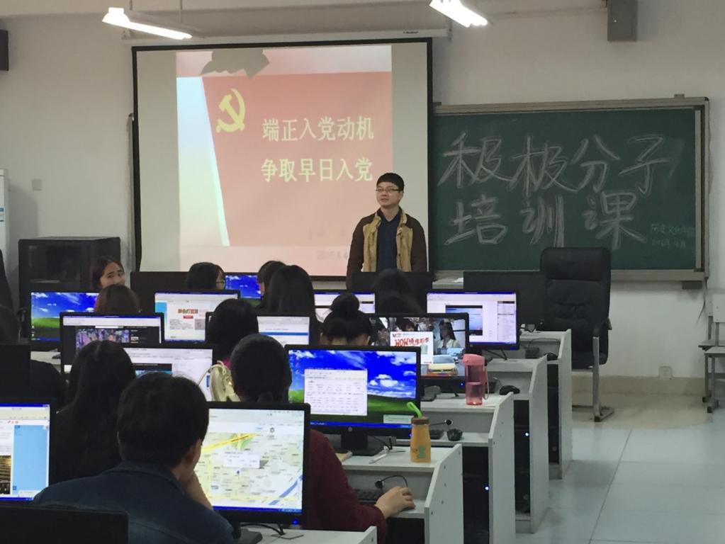为端正历史文化学院入党积极分子的入党动机,加深其对党的认识,历史文化学院于4月28日在经管楼C316举办了入党积极分子培训课。