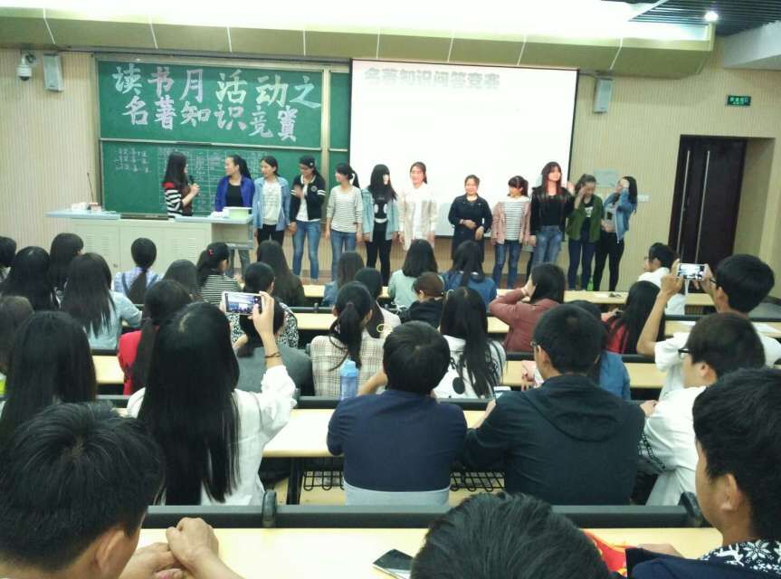2016年4月26日,信息科学与技术学院青年志愿者协会在东校区综合楼B112举办了读书月系列活动之“名著知识问答”竞赛。此次比赛在主持人幽默风趣的谈吐拉开序幕,参赛选手们都展开头脑风暴回答主持人提出的问题,观众们也积极参与微博话题互动,为选手加油投票。此次活动既让同学们获得了名著知识,又从中获得了乐趣,丰富了大家的课余生活。