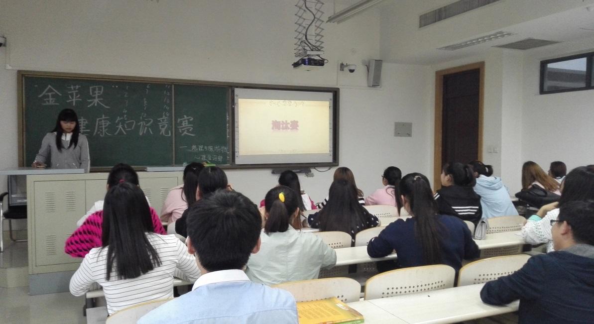为促进大学生心理健康,配合学校心理健康教育工作的开展,地理与旅游学院心理部在2016年4月18日晚上举办了金苹果知识竞赛的预赛。