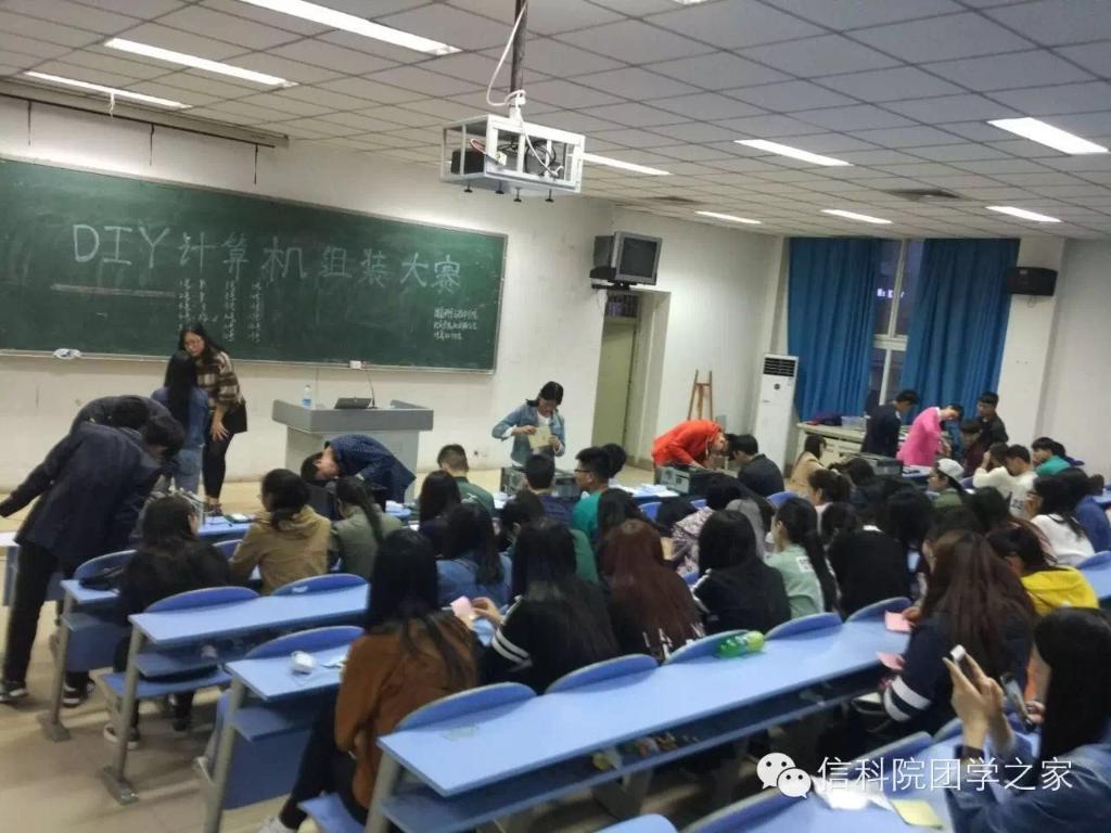 2016年4月7日晚上6点20分,由信息科学与技术学院、电商学院社团联合会、计算机协会联合举办的“DIY计算机组装大赛”在一阶三顺利举行。