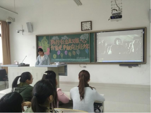 此次政治学习会议有些同学以PPT的形式向同学们展示了社会主义核心价值观。通过文字、图片以及动画视频生动形象地讲述了社会主义核心价值观的深刻内涵,让同学们充分理解社会主义核心价值观。
