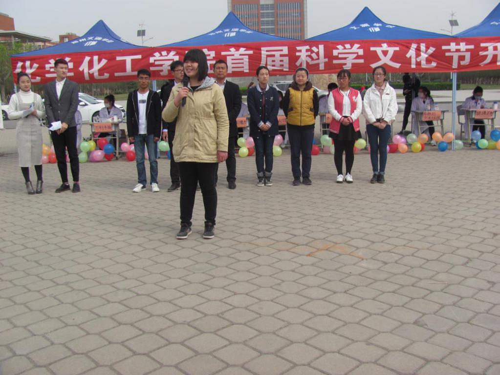 2016年3月29号上午10:00,郑州师范学院化学化工学院在西校区广场举行化学化工学院首届科学文化节开幕式。此次活动特邀郑州师范学院校团委副书记朱晔老师,各学院团总支书记,同时还有各学院的同学积极参加开幕仪式。