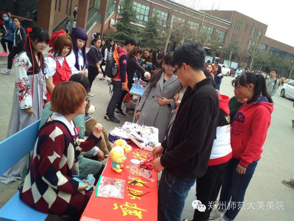 本活动由AOI动漫社承包,社员纷纷拿出自己的手工或者动漫藏品,由身着cos服的社员以较低的价格出售。活动现场十分火爆,同学们对手工制品十分感兴趣,引来众多同学围观、试戴、购买。