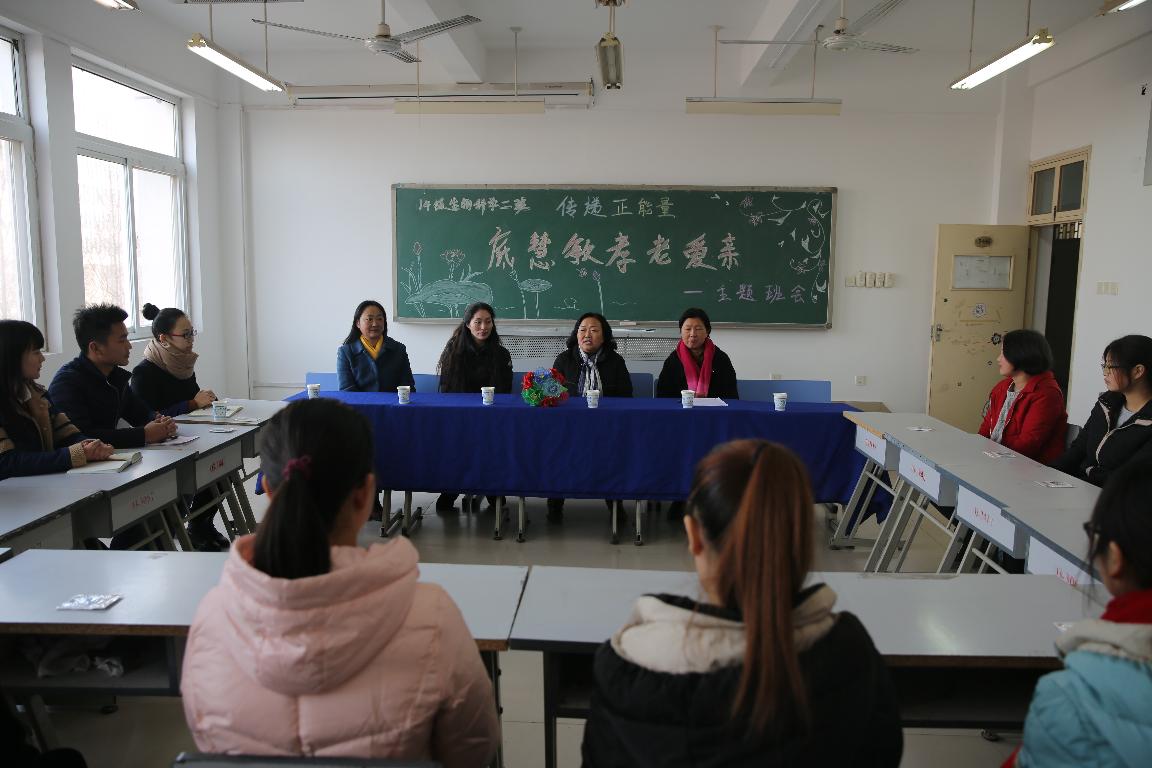 新年到来之际,12月31日,党委书记于向英在学院相关人员的陪同下,出席了生命科学学院14级生物科学2班“传递正能量,底慧敏孝老爱亲”主题班会。
