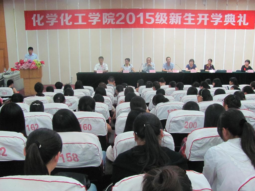 开学典礼在庄严的国歌中拉开帷幕。首先,院长秦会安对新同学的到来表示了热烈的欢迎,向同学们详细地介绍了化学化工学院的办学历史、师资力量、教学设施及专业特色,并向同学们提出了美好的希望,希望广大新生树立远大、正确的理想,了解大学的学习管理规定及实施过程,学会把读书、思考、实践有效结合起来的同时做到从被动学习向主动学习、研究性学习的转变,从而提高自身综合素质和就业竞争力。接着,王延珠书记向广大新生介绍了教师的教学风采,鼓励新生满怀热情,坚定信念学好专业知识,以饱满的姿态迎接接下来的大学生活。随后,教师代表陈建军以自己的人生经历与同学们进行充分交流,并希望能与同学们共同进步,开创未来。紧接着老生代表李玉营,新生代表王涵生先后作了发言,交流大学生活感想和经验。最后,团总支副书记李运涛作总结讲话。李老师首先对广大新生在军训中的表现给予了肯定,并愿他们继续发扬军训期间吃苦耐劳的精神,在以后的大学生涯中,加强专业素质,学会创新、学会生活,树立正确的世界观,肩负起国家赋予同学们的使命与责任,成为中国特色社会主义的合格建设者和可靠接班人。