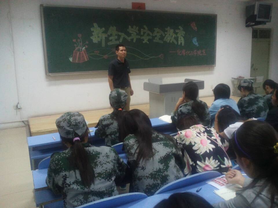 为加强14级新生安全教育宣传,提高防范意识。2014年9月11日晚,化学化工学院在西校区四阶二教室开展了新生入学安全教育大会,本次大会由13级辅导员王广军老师主讲。