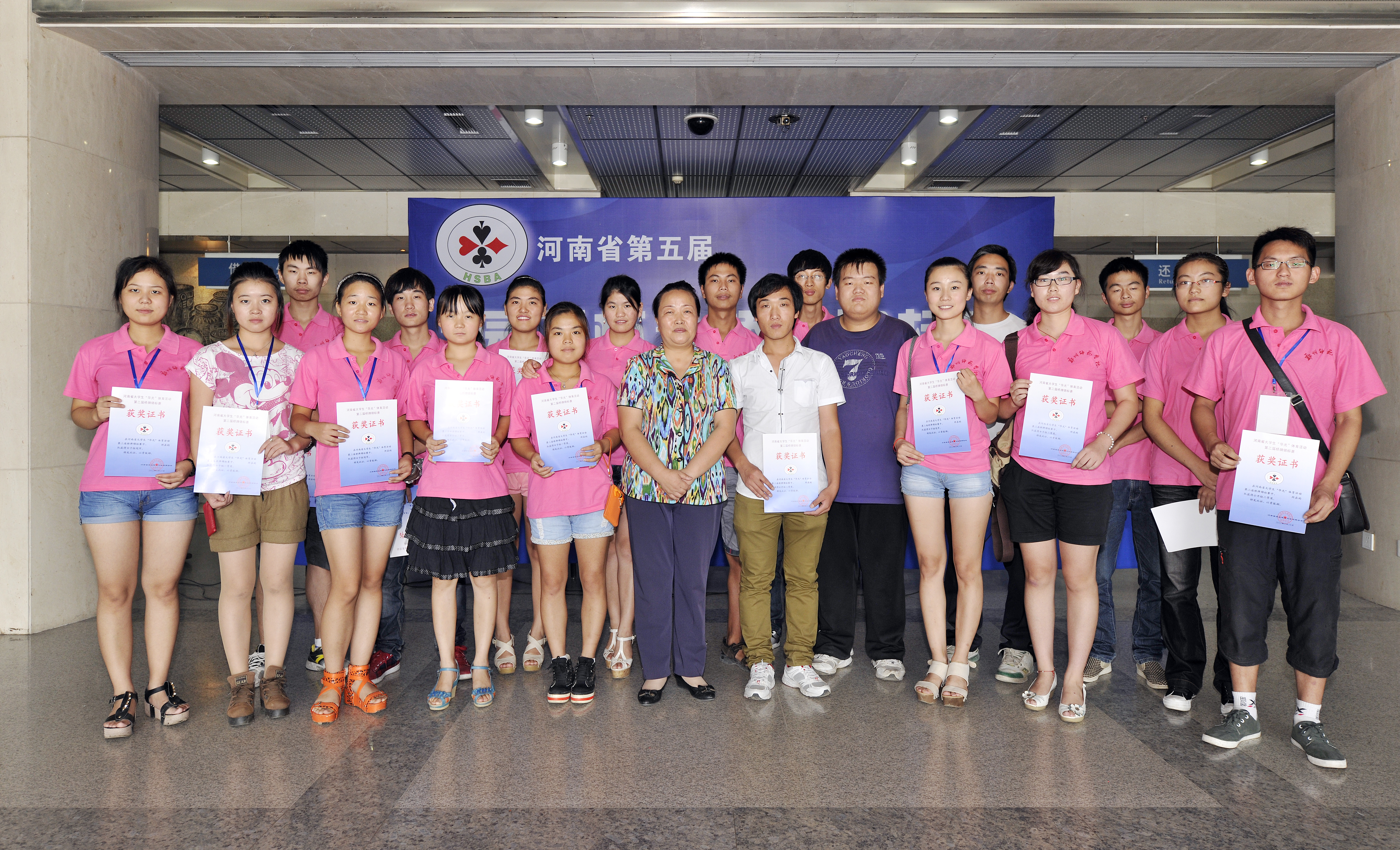 8月22日—24日,由省教育厅主办,郑州师院与河南省学生体育总会桥牌协会共同承办的河南省大学生“华光”体育活动第二届桥牌锦标赛暨第五届“园丁杯”桥牌等级赛在郑州师院图书馆举行。省教育厅体育卫生艺术教育处处长郭蔚蔚、副处长高翔,全国大学生体协桥牌分会副主席、省学生体育总会桥牌协会主席、郑州师院党委书记于向英,河南省城建学院副院长王春阳,省学生体育总会桥牌协会副主席秘书长杨发星、总教练王玉富,出席开幕式。