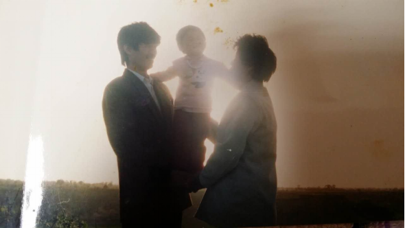 照片中穿着白色衬衣灰色西装的是我的爸爸,他是一名工人。右边的是我妈妈,她是个朴实的家庭主妇,妈妈的爱给了我很多温暖。照片中被托起带着满脸笑容的小女孩就是我,其实我还有个比我小两岁的妹妹,妹妹出生一个月就被送到姥姥家,一直到上小学才回来。跟妹妹比起来,爸爸妈妈陪伴我成长的时间更多。有的街坊邻居、亲戚朋友都说奶奶爸爸妈妈更爱我、更疼我。从小父母就教育我如何做人,如何做事。他们告诉我,对人要诚恳、不可以说谎、要学会宽容、学会尊老爱幼、要朴实节约、做事要踏实认真。 2008年由于全球经济危机,导致爸爸工厂的经济效益不好,于是离开工厂,和妈妈一起去甘肃做生意。习惯了爸爸妈妈陪伴的我,周末放假回家就感觉好孤单。他们一年只有春节时回来,在家短短几天,就又走了。甘肃的夏天还好,但冬天特别冷,温度零下二十几度,水泼出去,立马结冰。但爸爸妈妈还要开门做生意,爸爸有时还要去工地给他们修机器。有一次爸爸去修机器不小心把脚砸伤了,肿的鞋都穿不上,他都没有告诉我。后来才知道像这种碰伤、砸伤的情况很多。还有一次更严重,爸爸住院了,出院后就立马回甘肃做生意。我经常对他们说,生意不做了,你们早点回来吧,我已经长大了,让我好好孝敬你们。他们总是说现在还年轻,再多干几年。