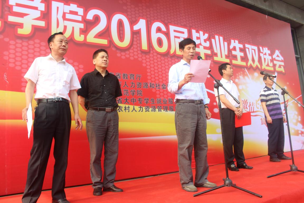 6月4日,由河南省教育厅、郑州市人力资源管理和社会保障局、河南省大中专学生就业服务中心、郑州农村人力资源管理服务中心和我校共同举办的2016届毕业生双选会在我校东校区举行。河南省教育厅就业指导中心副主任吴建中,郑州市人社局党组成员康中超、郑州农村人力资源管理服务中心主任张凯红、郑州市人社局就业促进工作办公室主任柳志亮、我校副校长张建航出席开幕式,就业指导中心主任陈磊主持开幕式。