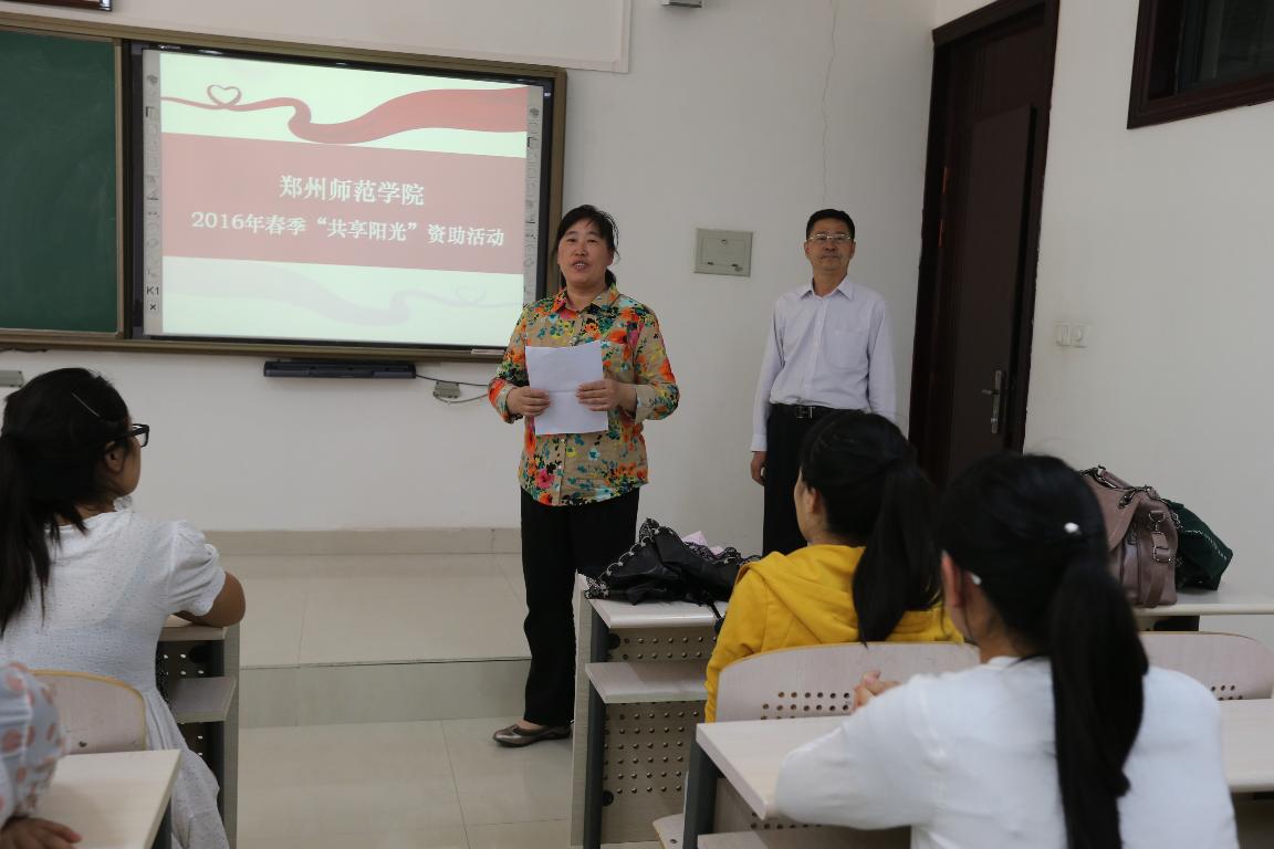 为让我校孤儿感受到集体的温暖和关爱,由学生处主办的2016年“共享阳光”活动于5月24日在公共教学楼D131举行。李树生书记向来自13个学院的31名孤儿发放了慰问品。