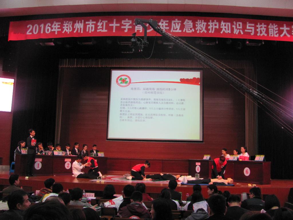 为扩大红十字运动基本知识和国际人道法的宣传,普及应急救护、造血干细胞、艾滋病预防和远离毒品等知识,进一步提高青年学生对生命与健康的认识和灾害逃生、自救互救技能,3月26至27日,在郑州市第四中学音乐厅,市红十字会、市教育局联合举办了郑州市第二届红十字青少年应急救护知识与技能大赛。
