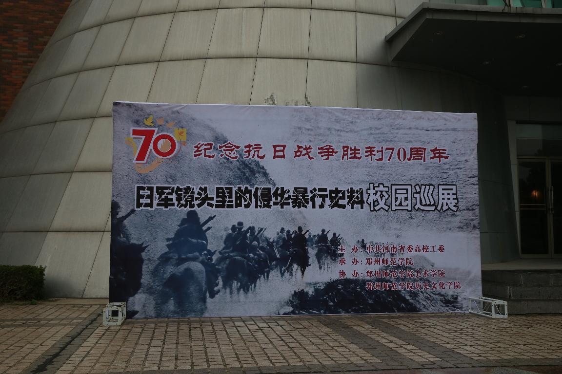 “纪念抗日战争胜利70周年——日军镜头里的侵华暴行史料校园巡展”活动由中共河南省委高校工委主办,河南财经政法大学、郑州师范学院等5所高校承办,在我校共展出6天时间。