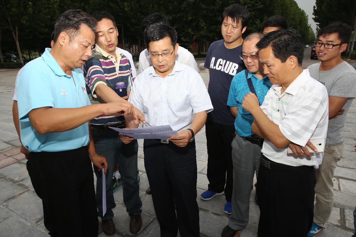 赵健校长先后到学校特教康复实验楼、综合训练馆、科研信息大楼及大礼堂看望施工人员,并对施工现场进行了认真仔细查看。他详细询问了施工情况,对工作人员克服天气炎热等困难、加班加点施工表示感谢,对工程建设成绩给予充分肯定。他要求学校与施工方做好对接,避免施工中的重复和浪费,施工方和监理方要各司其职,认真负责,做好工作,要做到“保质量、保工期、保安全”,把这几个学校的地标性建筑做成真正的优质工程、示范性工程。