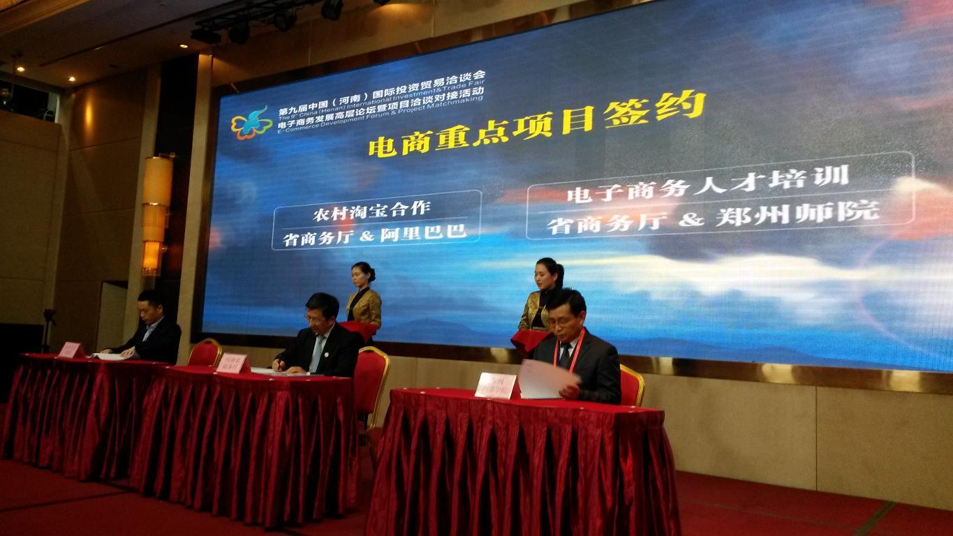 围绕加快我省电子商务发展,促进经济发展方式转换和产业转型升级的总要求,发挥双方优势,整合相关资源,密切配合,相互支持,合力推进电子商务等重点项目实施。日前,第九届中国(河南)国际投资贸易洽谈会分活动之一——2015中国(河南)电子商务发展高层论坛暨项目洽谈对接活动在天鹅城国际酒店举行。郑州师范学院与省商务厅电商人才培训合作项目作为第九届中国(河南)国际投资贸易洽谈会的重要活动之一顺利签约启动。副省长赵建才参加活动。此次签约目的在于创新厅校协作机制,探索多元驱动模式,强化政府指导、政策引导和高校支持、科教支撑两个作用。