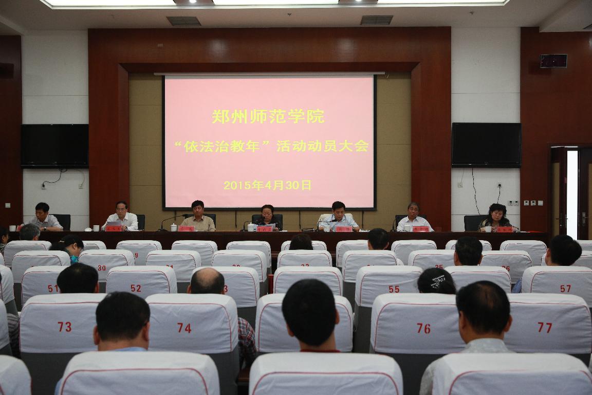 4月30日上午,我校“依法治教年”活动动员大会在图书馆十楼报告厅举行。全体校领导及各单位负责人参加了会议,会议由校党委书记于向英主持。