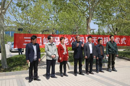 首先由副书记翟幸福代表学校致辞,感谢三门峡湿地公园的馈赠,使郑州师范学院“天鹅湖”名符其实,成为校园一道靓丽的风景,成为生命科学学院学生观察、研究、保护鸟类的良好平台,而且架起了我校与湿地公园教学、科研、保护合作的桥梁。三门峡湿地公园管理中心主任李云峰介绍了三门峡对天鹅的保护与研究,希望能有更多的野生动物研究、保护方面项目展开合作,实现共赢。学校向三门峡湿地公园管理中心颁发了“河南省野生鸟类观察学会研究基地”和“郑州师范学院生命科学学院教学实践基地”牌匾。