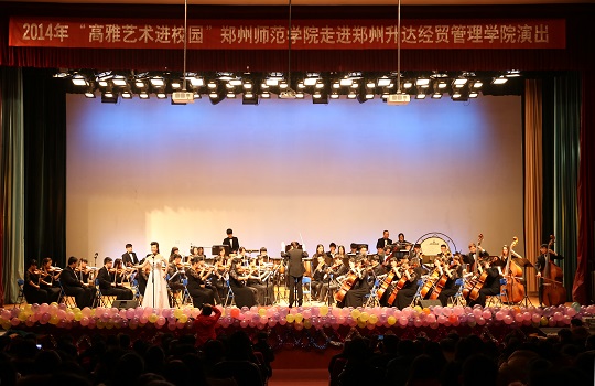 由省教育厅、省文化厅、省财政厅共同主办的“2014高雅艺术进校园——郑州师范学院中外经典歌剧唱段音乐会”,分别于12月9日和10日在郑州幼儿师范高等专科学校和郑州升达经贸管理学院精彩上演。