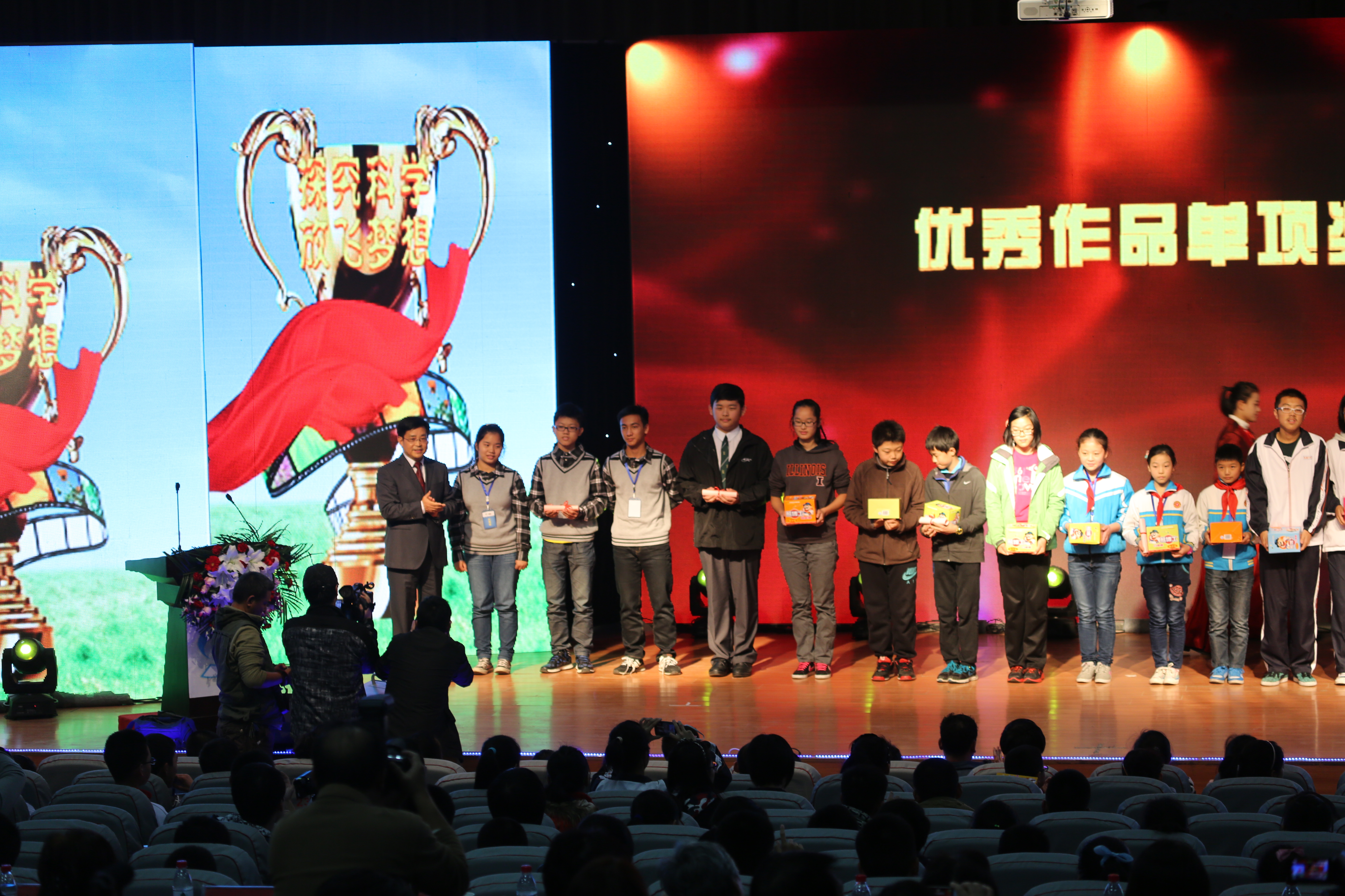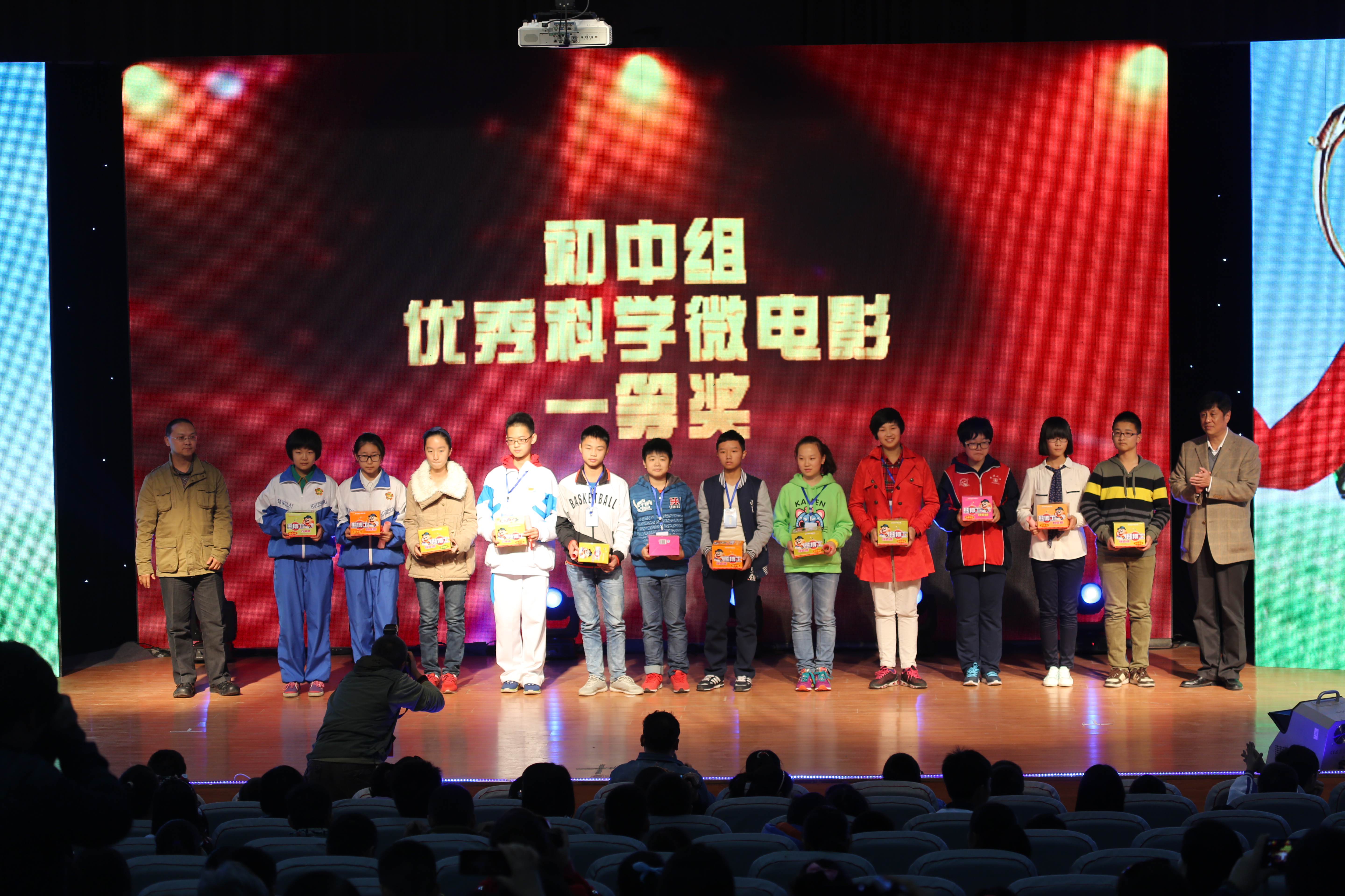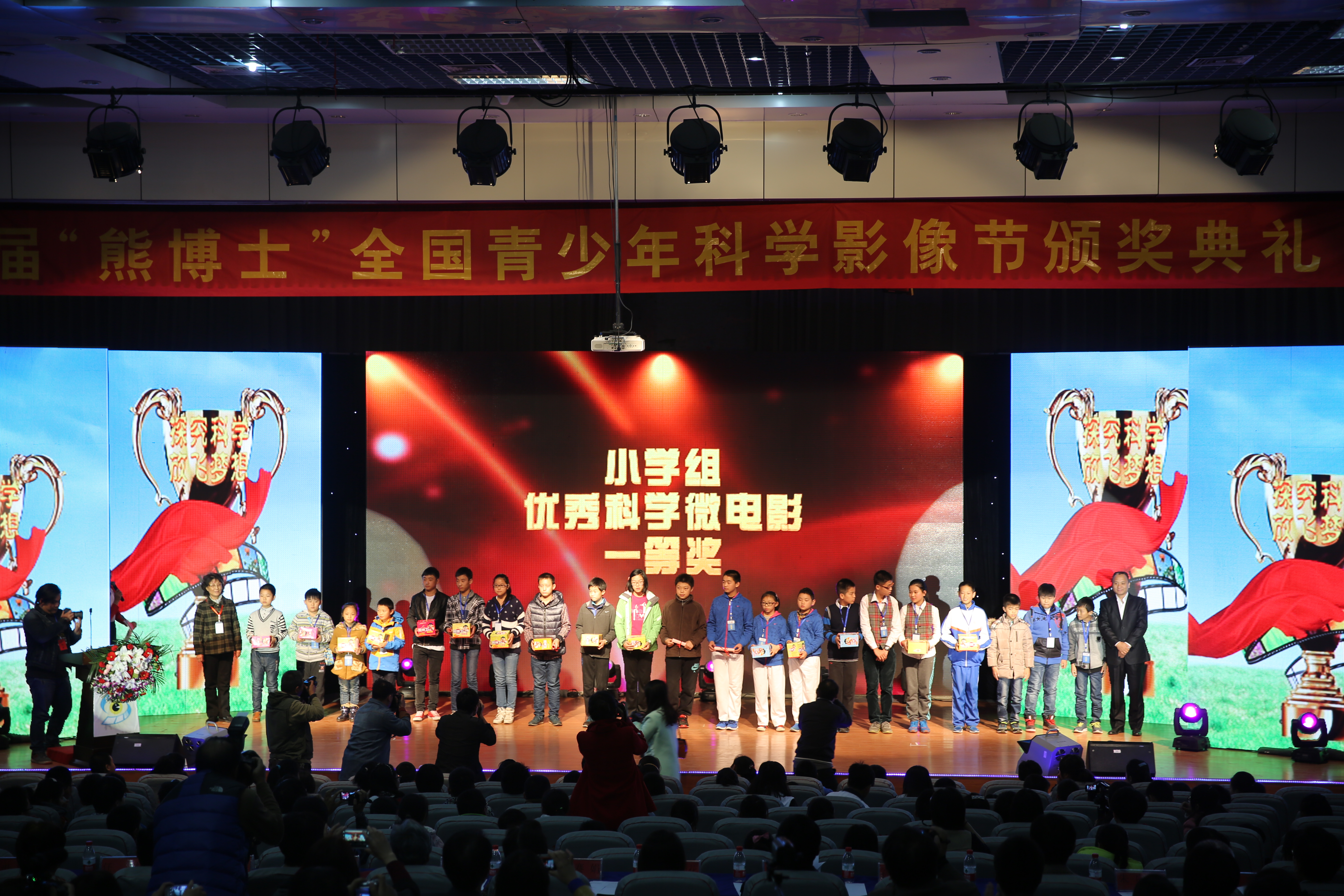 11月7日,由中国科协青少年科技中心、中国青少年科技辅导员协会和河南省科协共同主办的第五届“熊博士”全国青少年科学影像节展评活动在我校成功举办。 中国科协副主席、中国工程院院士、中国青少年科技辅导员协会理事长陈赛娟,中国科协青少年科技辅导员协会常务副理事长牛灵江,中国科协青少年科技中心副主任刘会强,河南省科协主席霍金花,广西省科协副主席梁春花,以及河南省青少年科技中心、广西青少年科技中心等相关部门领导和东莞徐记食品有限公司相关负责同志参加展评活动并出席颁奖典礼,我校校长赵健、党委副书记、工会主席弓民出席活动。 第五届“熊博士”科学影像节活动以“探究科学,放飞梦想”为主题,活动内容包括科学微电影、科普动漫、科普游戏创意设计等三个类别。共有31个省、自治区、直辖市、新疆生产建设兵团以及香港特别行政区推荐申报科学微电影和科普动漫作品1463项。经专家评审共评出一等奖151项,二等奖326项、三等奖488项。本届科学影像节活动申报作品质量有较大幅度的提高,充分展示了我国青少年和科技教师在新媒体科普活动方面取得的新成绩、新突破。 活动期间,来自全国的166名青少年、65名科技辅导教师带着65件作品参加展映展评,采用现场投票的方式选出各类单项奖7项,最佳作品奖5项。为检验青少年创新思维和动手能力,青少年代表实地采集素材,现场拍摄制作出65部多媒体作品进行现场技能测评。同时全国各省、自治区、直辖市青少年科技教育工作机构的工作人员、辅导教师代表还举行了活动研讨会,共同探讨交流开展青少年科学影像节活动经验和体会。 陈赛娟副主席对这项活动的开展给予了充分的肯定。她指出这些优秀作品都是从生活中挖掘出来的,体现了青少年敏锐的思想,他们运用影像技术创造性的制作出影像作品,反映了孩子们从小具有科学探究精神,动手能力很强。青少年参加这项活动将对他们一生产生深远的影响。希望他们在科学影像拍摄制作领域取得更大的成绩,成为这方面的科学家。 据主办单位介绍,本届活动首次采用了线上投票、线下专家评审和现场技能测评相结合的方式进行评比。获得“熊博士科研之星奖”代表将由徐记食品有限公司提供全额资助,赴广东东莞参加 “科学探秘”活动。 据悉,第六届“熊博士”全国青少年科学影像节展评活动将在广西南宁举办。 |