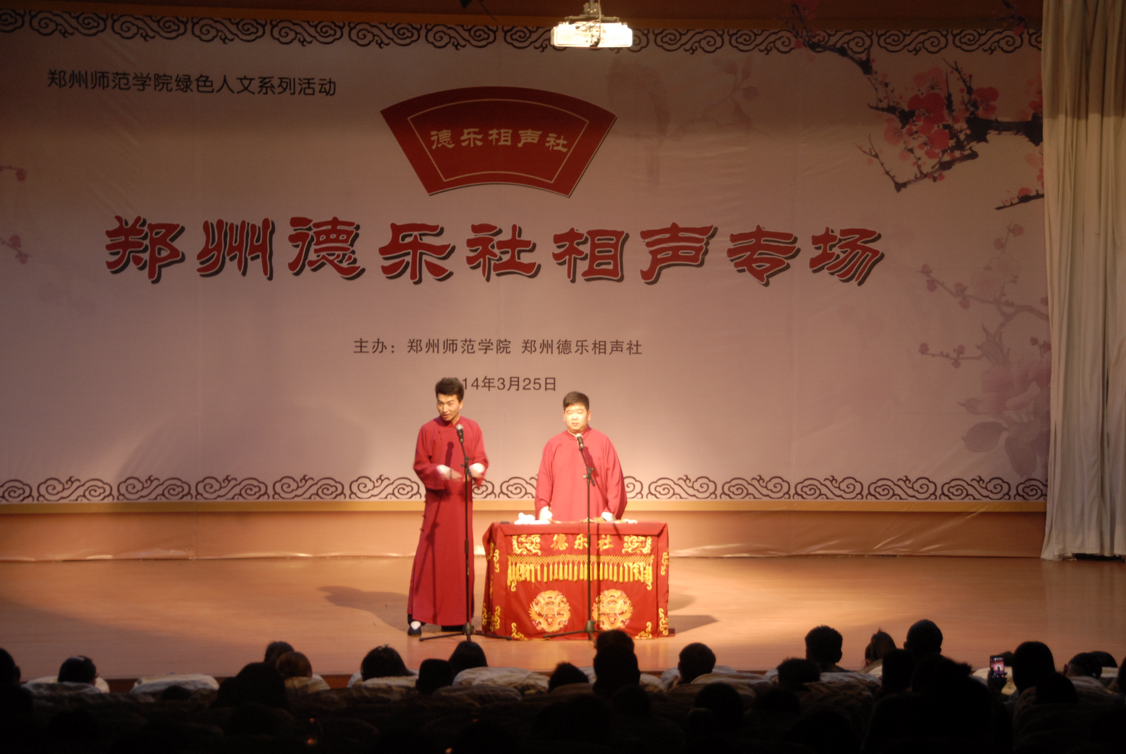 3月25日下午,作为“郑州德乐相声社欢乐进校园”第一站,我校在七号报告厅举行传统艺术进校园之郑州德乐相声社专场演出。