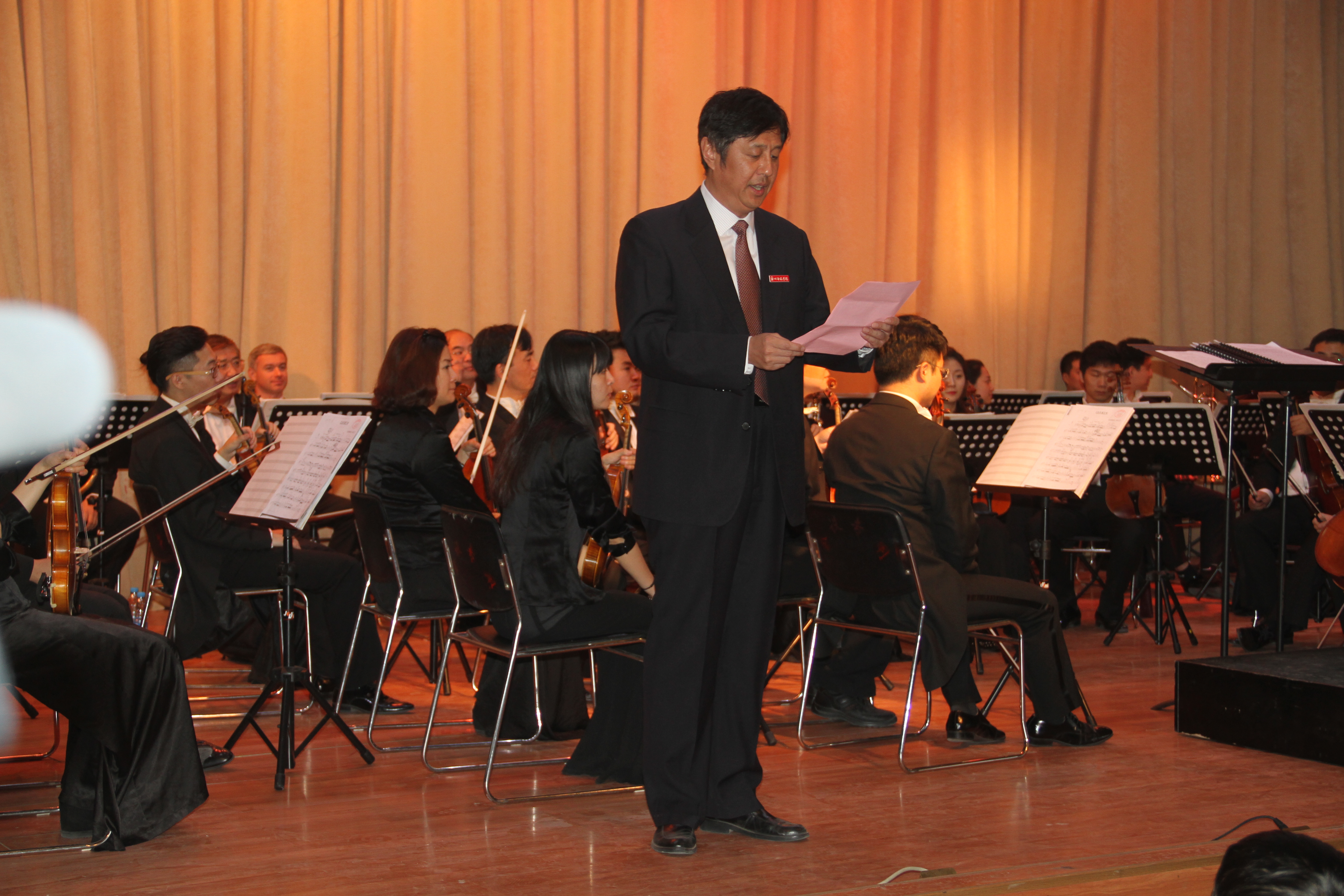 高雅艺术进校园,乐声歌韵沁心田。整场演出由著名指挥家朱曼担纲指挥,青年演奏家黄中义担纲首席,中央歌剧院著名男中音歌唱家王立民担任主持。
