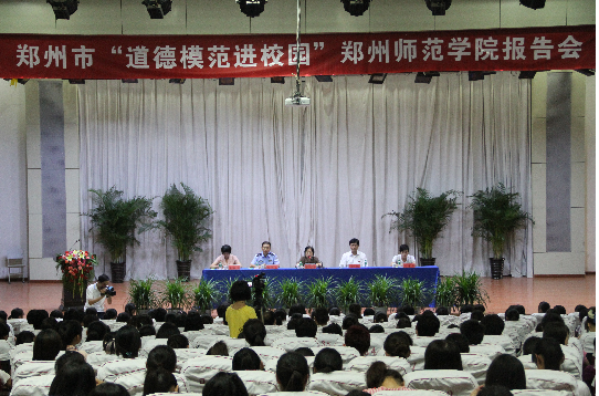 6月19日下午,由市委宣传部、市文明办共同开展的“道德模范进校园”巡讲活动报告会走进郑州师范学院。市文明办副主任薛土岭、未成年人道德教育处处长朱继军等领导参加报告会,报告会由我校党委副书记、工会主席弓民主持。