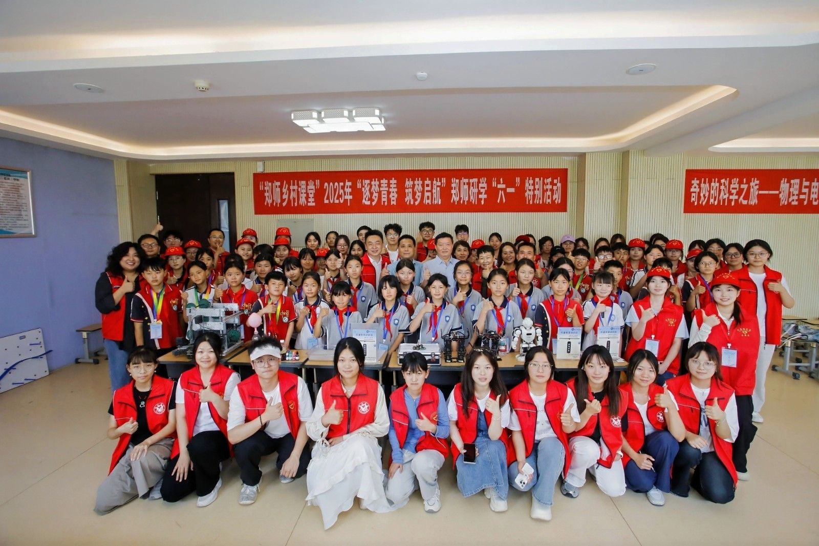 在六一儿童节来临之际,学校以“郑师乡村课堂”志愿服务项目为依托,以“逐梦青春 筑梦启航”为主题,开展了一场别开生面的研学“六一”特别活动。学校主要领导、中牟县教育局相关领导、部分受助乡村学校教师代表,以及正在中牟县韩寺镇支教的志愿者带领来自三所乡村学校的30名小学生参加本次活动。外国语学院、特殊教育学院、音乐与舞蹈学院、物理与电子工程学院、生命科学学院、历史文化学院、体育学院、传播学院、自然博物馆等部门的师生志愿者参与。