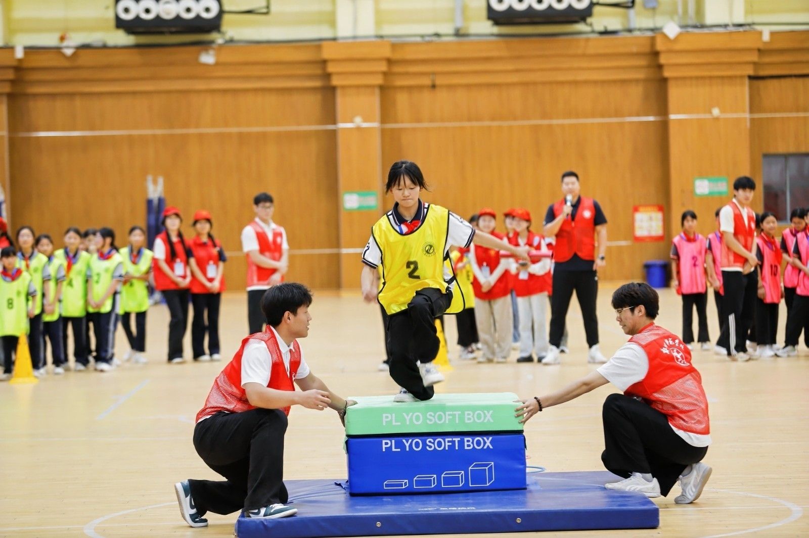 在综合训练馆,孩子们走进了瑜伽馆、室内游泳馆等多类场馆,与正在上课的大学生互动,并开展了综合素质拓展竞赛。体育学院师生志愿者根据参加研学孩子们的学龄和年龄,精心设计了跳绳、障碍赛、投篮等环节,现场气氛欢欣热烈。乡村孩子为师生志愿者带来了精彩的篮球操和花样跳绳展示。郑州师范学院校领导和中牟县领导分别为冠亚季军组颁奖并合影留念。
