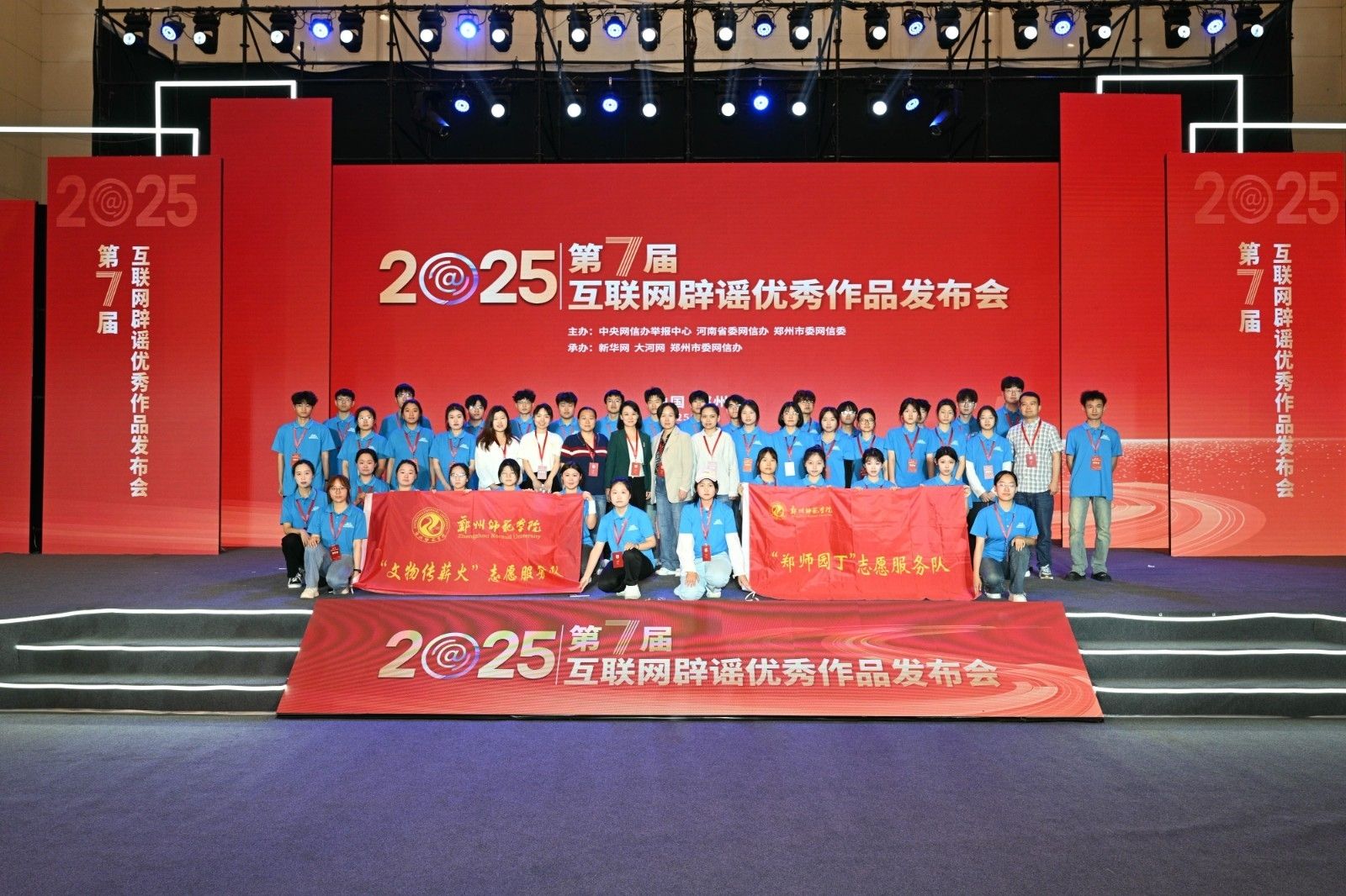 第七届互联网辟谣优秀作品征集发布活动由中央网信办违法和不良信息举报中心、河南省委网信办、郑州市委网信委主办,新华网、大河网、郑州市委网信办承办。郑州师范学院“郑师园丁”志愿服务队和“文物传薪火”志愿服务队的40名志愿者全程参与发布会的各项会务工作,为会议的圆满举办提供了坚强的保障。
