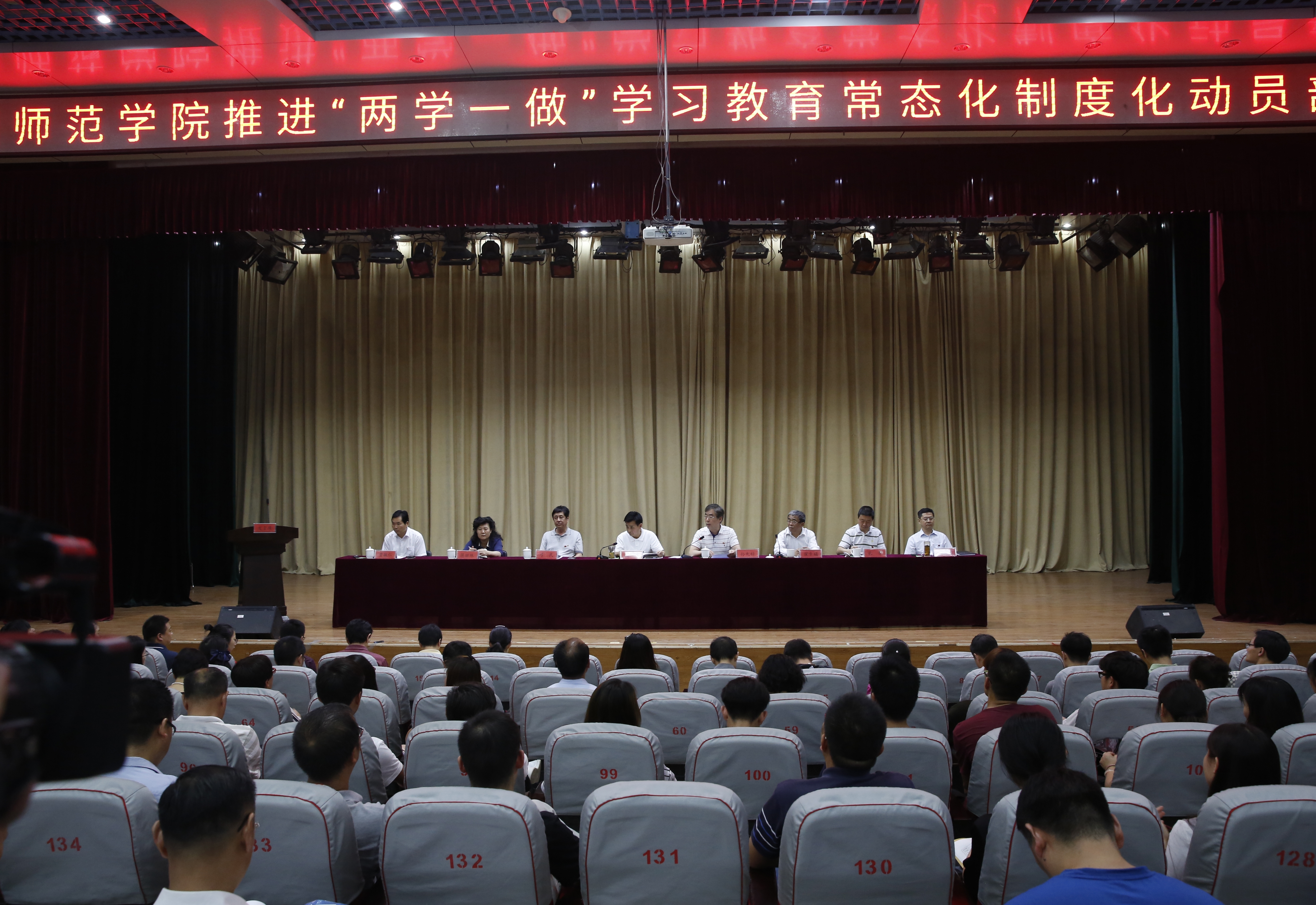 5月26日下午,我校在七号报告厅召开推进“两学一做”学习教育常态化制度化动员部署会。会议由校长孙先科主持,全体教职工党员参加了会议。