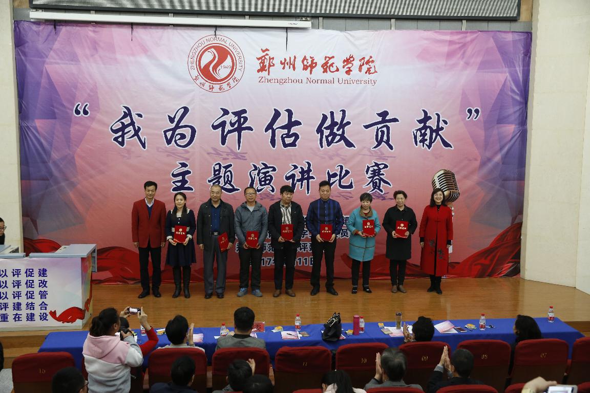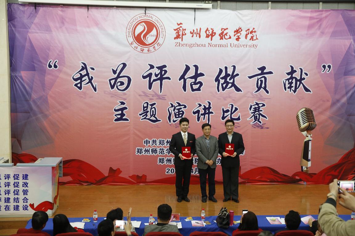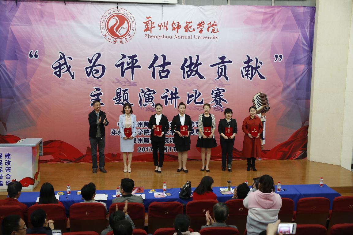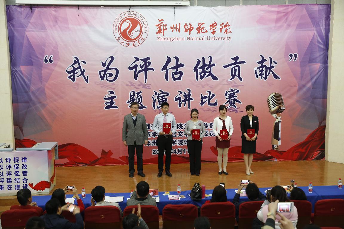 《关爱生命,激发潜能---我为迎评做贡献》、《在评估中磨砺精致》、《撸起袖子加油干!》、《郑州师范学院,我心灵的安放地》、《滴水汇江海,我为评估做贡献》一篇篇激情洋溢的演讲来自教师工作中的生动事例和感人事迹,从不同的角度阐述了演讲者对迎评工作的认识和理解,并决心从自身做起,从小事做起,用实际行动为迎评作贡献。这既是一次师德师风教育和精神洗礼,也是一次迎接本科评估工作的动员会!最终,来自地理与旅游学院党总支的樊华和来自机关党总支的许波获得一等奖。