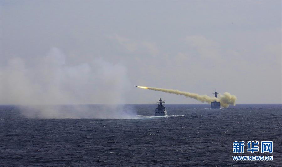 8月1日,在东海举行的实兵实弹对抗演习中,舰艇发射反舰导弹。当日,海军在东海某海域组织复杂电磁环境下实兵实弹对抗演习,最大限度检验体系作战能力、战法训法、武器装备效能,共实射各型导弹、鱼雷数十枚。新华社记者 吴登峰 摄