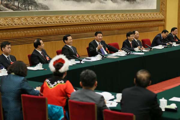 2016年3月8日,习近平参加十二届全国人大四次会议湖南代表团的审议。新华社记者兰红光摄